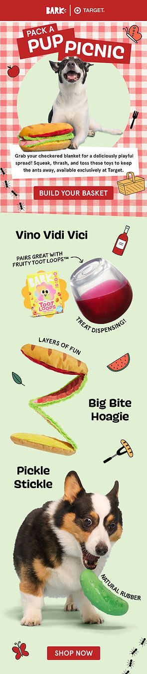The team at BARK are all about creativity and having a strong, but fun brand voice. I was able to further this vision by creating eye catching and joyful email graphics for their new product launch initiatives.